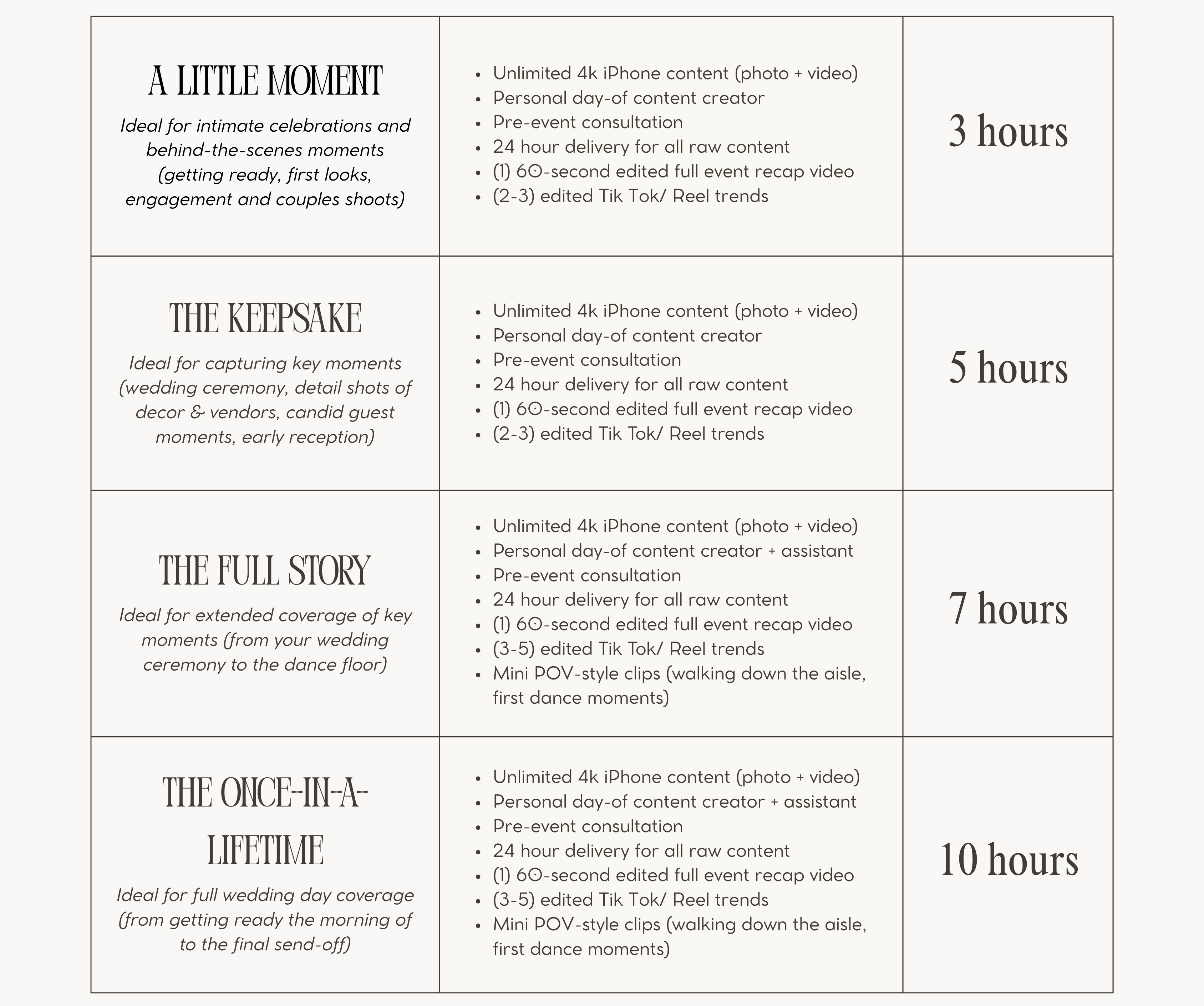 Looking for something more tailored? Reach out to us – our packages are fully customizable and made for your moment